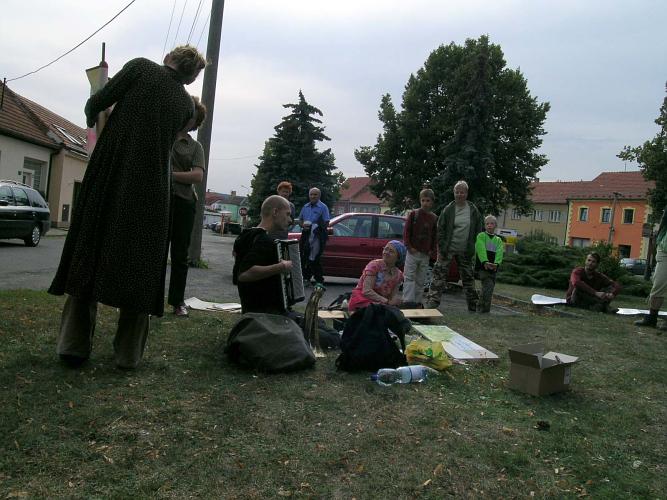 ... Každý den jinak a každý den jinde. Lidé se někdy trousili sem tam zpoza rohu, jindy po skupinkách hojně. Sem tam se bojovalo s hustým tichem, nebo zas něco příjemně zahřálo. Tahali jsme lidi spící z domků a s chutí zkoušeli něco probudit. Auta přibržďovala, lidé kroutili hlavami, kronikář nás odmítl zapsat do kroniky kvůli přisprostlým motivům ...