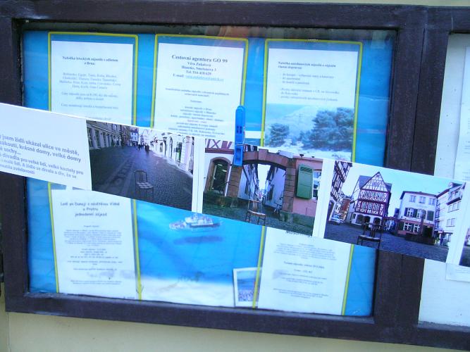 Jednou v pátek se na náměstíčku v Křtinách sešlo několik lidí s batohy a konstrukcemi, kteří začali rozbalovat první kočovnou výstavu putující ne po galeriích, ale po městečkách a vesnicích. Skoro skličující ticho rozedral až váhavý amplión ve čtyři hodiny. To byl ten čas kdy to opravdu začalo ...