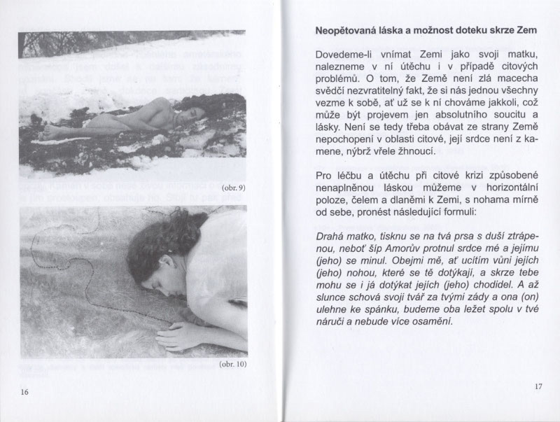 ![]() Advanced experiences with "Earth connection". Conscious kissing the ground and implanting particular energy pattern to the places with interaction of heart. Results of this subtle works were shared, displayed in public. "Art containers" performance festival, Prague, Czech republic